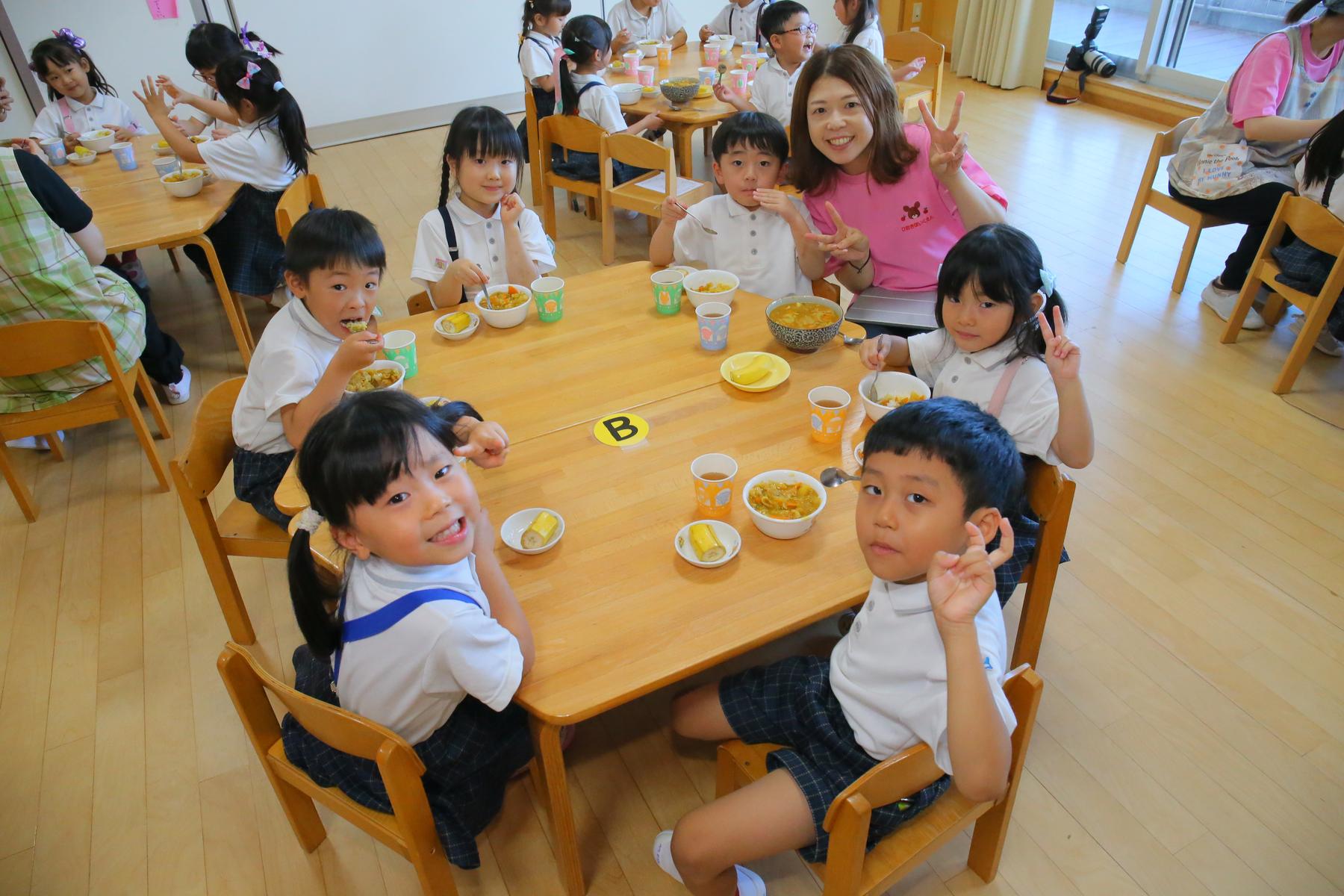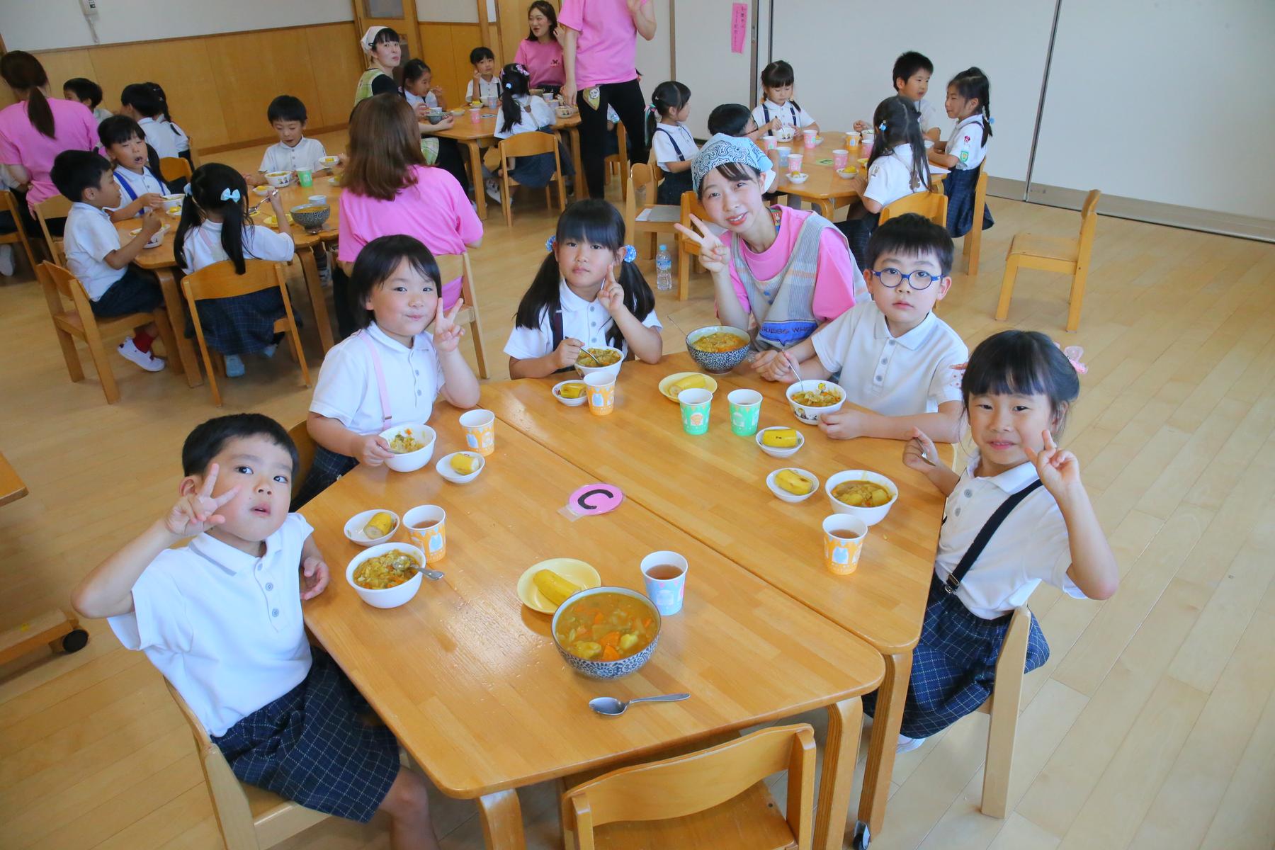 夕食は子ども達が大好きなカレーライス!みんなで食べるカレーライスはとてもおいしくて、みんなたくさんおかわりしていましたよ。