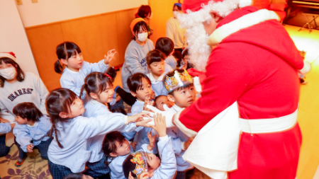 ネイティブスピーカーの外国人・日本人講師を招いて、月に2回英会話のレッスンを行います。 歌やゲーム・簡単な英単語を使った楽しい内容で、担任も一緒にレッスンを受けます。